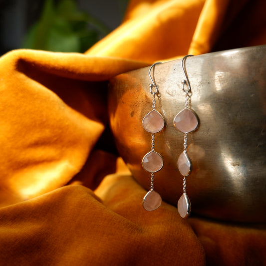 Katrina - Rose Quartz faceted Silver Drop Earrings - matching bracelet