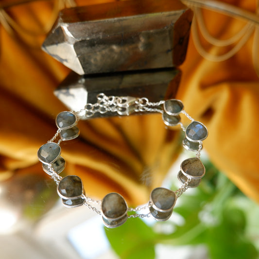 Lavinia - Labradorite faceted Silver Pear Bracelet - matching earrings