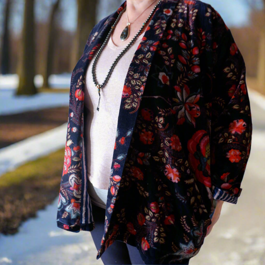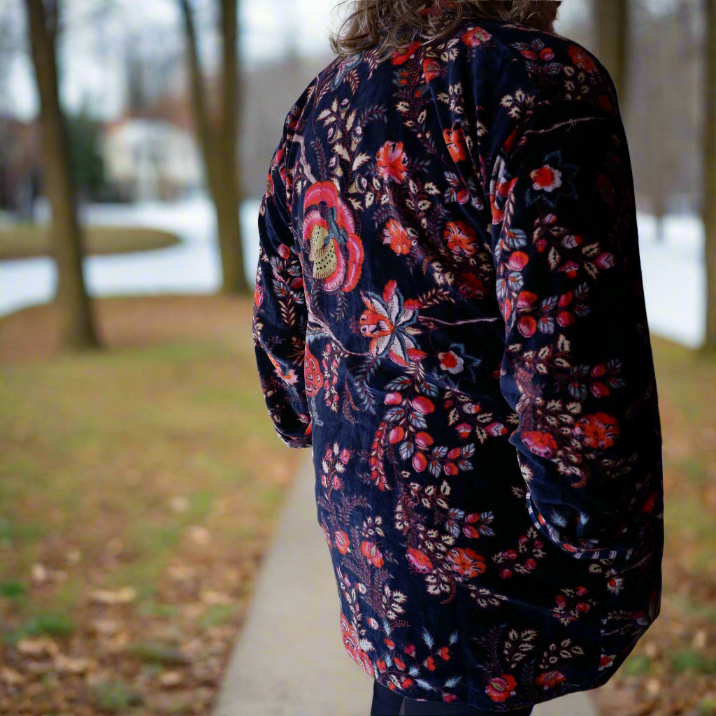 Enjoy mixing this velvet jacket with your wardrobe and experiment making it your own!